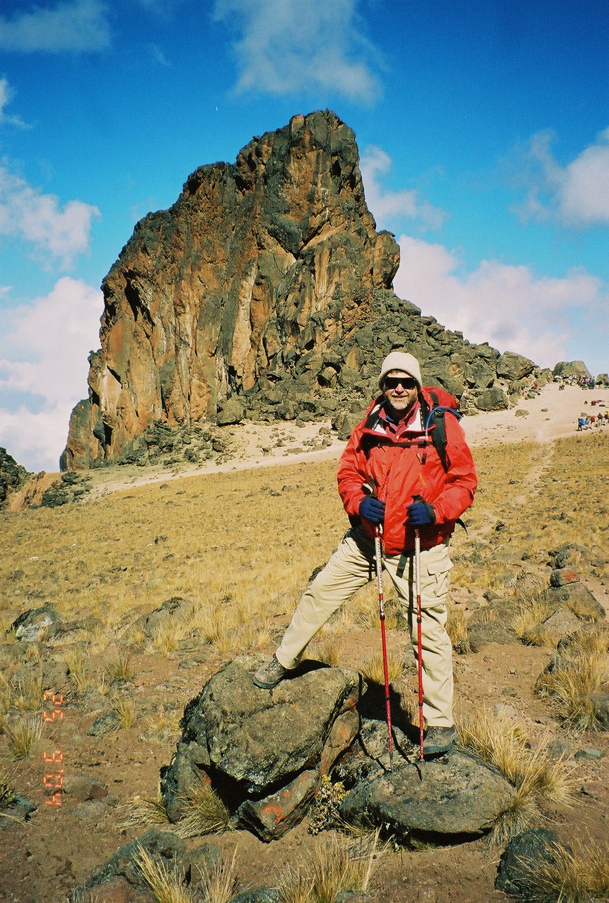 Some of the people who might read this will already know that the trip I made to Tanzania in 2004 was not my first attempt to climb the mountain. Details of my first attempt to climb Mt. Kilimanjaro with my wife, Carolyn, in early 2002 (I think of it as my “Throwing Up On The Snows of Kilimanjaro” trip), are not very important here. What made me want to go back to Kilimanjaro just a couple of years later? Jokingly, I suppose if that I had been able to lie convincingly about the experience and tell people I had climbed the mountain all the way to the top at my first attempt, I would have saved a lot of time, effort and money. Although I was occasionally tempted to say I’d climbed the mountain, when talking with strangers, I couldn’t bring myself to say I’d done it. I always had to say, “I got sick. I didn’t get above 15,000 feet.”