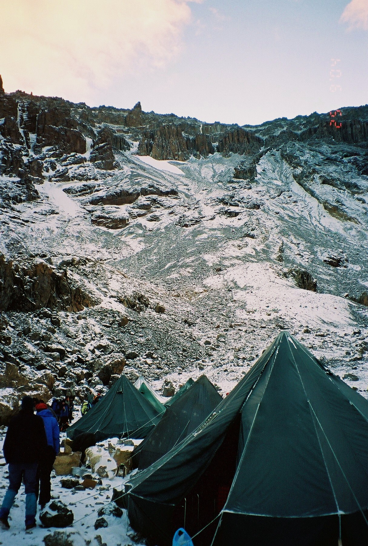 It was a frigid night, zero degrees or cooler. I was awakened twice by the guides, who made the rounds of all the tents, and was asked odd questions like my birth date and home town to be certain I could speak clearly and reason, and was not suffering from AMS.